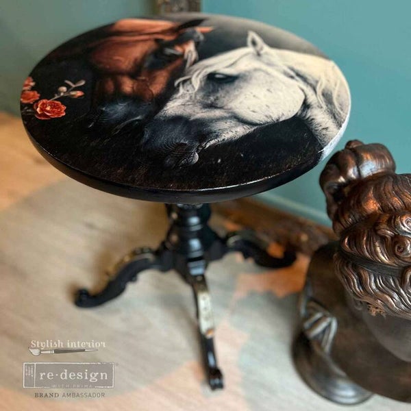 "Wild Hearts" is opnieuw ontworpen met Prima's® A1 Decoupage Fiber Paper en legt de geest van ongerepte schoonheid vast met de verbluffende afbeelding van twee paarden die een moment delen te midden van een bed vol bloeiende bloemen.