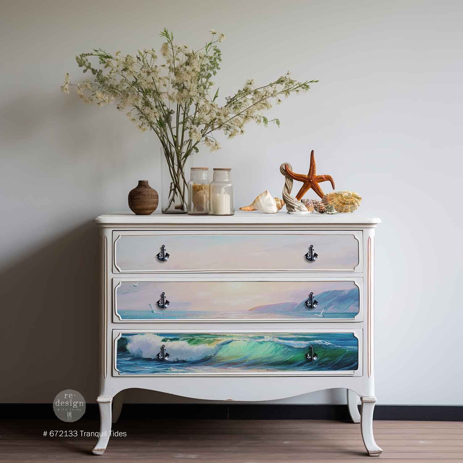 Ervaar de schoonheid van de zee in uw eigen huis met Redesign's “Tranquil Tides” A1 Decoupage Fiber Paper.