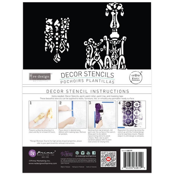 Deze stencil is perfect om een vleugje elegantie toe te voegen aan uw meubels, muren en meer. Gebruik met Chalk Paste, Metallic Accents, Fiber Paste, Décor Waxes, Crackle Pastes en andere media om unieke en gepersonaliseerde elementen te creëren in uw huisdecoratieprojecten.