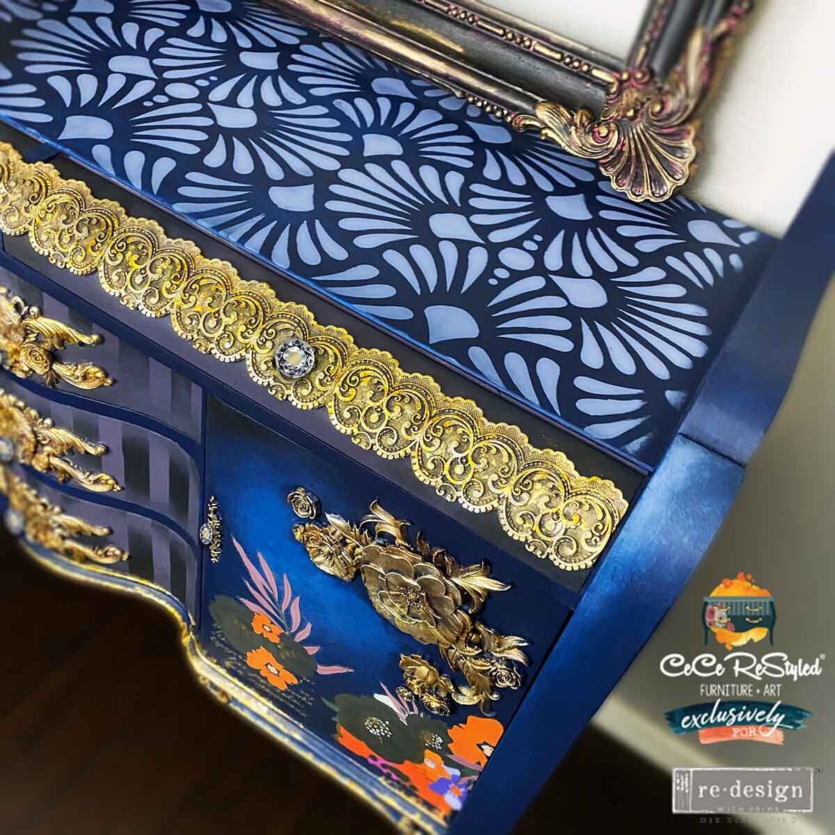 Deze stencil is perfect om een vleugje elegantie toe te voegen aan uw meubels, muren en meer. Gebruik met Chalk Paste, Metallic Accents, Fiber Paste, Décor Waxes, Crackle Pastes en andere media om unieke en gepersonaliseerde elementen te creëren in uw huisdecoratieprojecten.