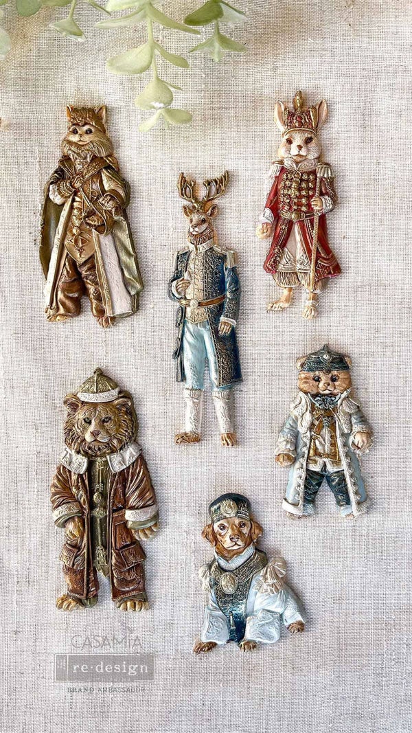 Deze heerlijke mal neemt je mee naar een wereld waar dieren hun mooiste vintage vakantiekleding dragen, klaar om in je creatieve projecten te springen. Van de knappe leeuw in zijn koninklijke jas tot het charmante hert in zijn sierlijke uniform, elk personage brengt een vleugje grilligheid en een heleboel persoonlijkheid in je vakantiedecoratie.