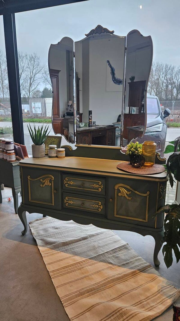 Mis deze kans niet om uw slaapkamer een exclusieve uitstraling te geven met deze unieke make-up tafel. Wil je het helemaal af maken bekijk dan de zeker de bijpassende nachtkastjes.koop je heel de set is het €350,- ivp €369,- met Kortingscode BRIDGERTON. Interesse? Stuur ons een bericht!
